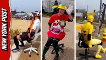 Backwards office chair racing a quirky tradition in Japan