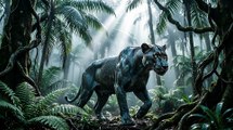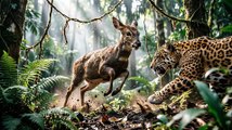 Rough ocean waves, animal escaping danger, cinematic slow motion water action.