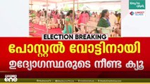 പോസ്റ്റൽ വോട്ടിനായി നീണ്ട ക്യൂ... വോട്ട് ചെയ്ത ശേഷം മാത്രമേ സാമഗ്രികൾ ഏറ്റുവാങ്ങൂ എന്ന് ഉദ്യോഗസ്ഥർ