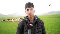 Meradaki koyunların yanına gelen sığırcık kuşları görsel şölen sundu