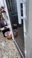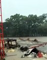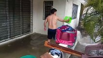 Carlos González sacando agua de su casa