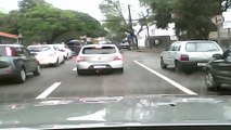 Motociclista fica "grudada" no capô após colisão na Avenida Rocha Pombo