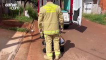Bombeiros atendem vítima de colisão entre carro e moto na Rua Rio da Paz