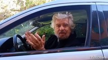 Grillo arriva a bordo di un carro funebre sulle note dell'Inno alla Gioia