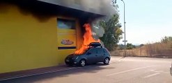 Selargius, auto in fiamme nel parcheggio di un supermercato:Â intervento dei vigili del fuoco