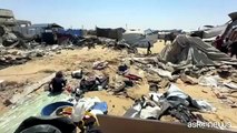 Gaza, palestinesi tra le tende distrutte a Sud-Ovest di Khan Yunis