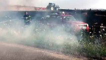 Auto in fiamme sulla 131