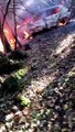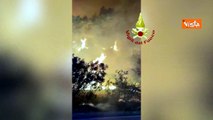 Il fuoco e il fumo nero, le immagini dell'incendio nel campo rom sulla statale 387