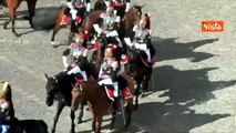 Papa Leone XIV al Quirinale, i Corazzieri a cavallo entrano nel Cortile d'Onore