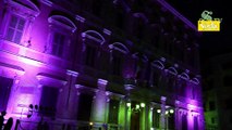 La facciata di Palazzo Madama illuminata di viola contro il tumore al pancreas