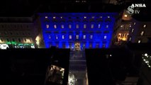 La facciata di Montecitorio illuminata di blu per la Giornata Nazionale vittime civili guerre