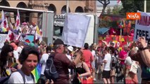 Animalisti travestiti da frati al Pride di Roma con i cartelli "Free animals"