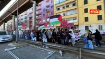Corteo pro Gaza sulla Prenestina a Roma, i manifestanti cantano "Bella ciao"