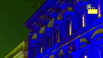 La facciata di Montecitorio illuminata di blu per la Giornata Nazionale vittime civili guerre
