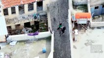 Çocuğa vuruyormuş gibi numara yaptı, köpek o çocuğu adama karşı böyle korudu