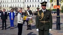 Ursula von der Leyen a Kiev depone fiori al Muro dei caduti