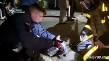 Kiev, palazzo sventrato da un drone russo: i vigili del fuoco salvano un gatto dalle macerie
