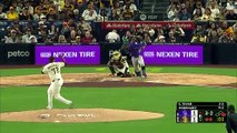 00:02Sent to center Dane Myers the former Marlins deep retreat extends and makes the play a crazy crash into the