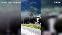 Maxi-incendio in un deposito di gomme a Merano