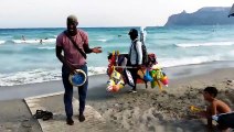 Cagliari, bongo e voce al Poetto: Moestapha conquista i bagnanti con “Nanneddu meu”