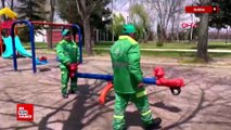 Bursa'da temizlik görevlilerinin molada tahterevalli eğlencesi