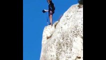 Si lancia col paracadute dalla Sella del Diavolo, lo spettacolare volo