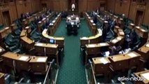 Virale la foto dello speaker neozelandese con il bebé in aula