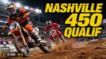 Nashville, fin d’après‑midi au Nissan Stadium : la 250SX East revient en piste pour la Qualif 2, et cette fois tout le monde est à fond, les lignes sont trouvées et les chronos commencent vraiment à descendre. En tête du championnat, Cole Davies doit défendre sa plaque face à Seth Hammaker et au reste du plateau 250 East qui n’a plus rien à perdre.