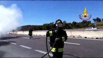 Auto in fiamme sulla 131