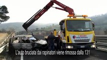 Rapina fallita sulla 131: l'auto bruciata