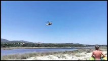 Incendio a San Teodoro, il canadair fa rifornimento d'acqua in mare