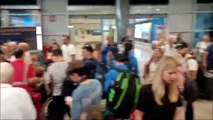 L'arrivo della Nazionale all'aeroporto di Elmas