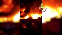San Donnino, incendio all'ex inceneritore. Vigili del fuoco in azione