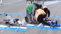 La salida más surrealista: evacúan en camilla del maratón de Pekín... ¡a un robot!