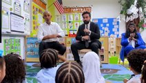 Obama and Mamdani sing Wheels on the Bus together to preschoolers