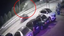 İş yerlerine çarpıp devrilen otomobilin altında kalmaktan son anda kurtuldu