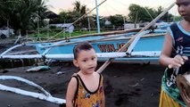 Early this morning at the beach in our area, many fishermen are busy arranging their nets. Other fishermen are just arriving at the shore and are met by many people because they are giving away fish. They spread their nets, which are filled with entangled malangsi fish, to let people pull them out and have some. It's very lively as people help themselves by detaching the fish from the nets; it took some time because there was a huge catch. Since it's summer, it's currently malangsi season here. Thanks be to God for the grace provided, as many were able to get fish, and thanks to the generous fishermen for sharing their blessings. In the latter part of the video, you can see tiyo Ronald, tiya Andat, and her husband arranging the nets. They took a short break for breakfast and finished their work afterward. Good morning to everyone!