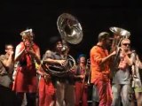 Quelques membres de la fanfare et des invités surprise interprètent Soleil Rouge à la fin de l'enterrement de Maty l'Ohé aux fêtes du 15 août en Outremeuse