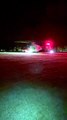 A Coastguard helicopter departs after a midnight airlift of an ill ultra marathon runner from Exmoor to hospital in Taunton.