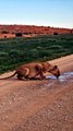 lioness drinking water Mommy. I need your attention saying little baby