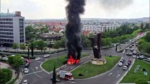 Arde un camión en la rotonda de Vallsur