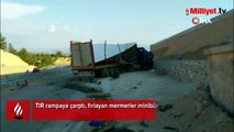 TIR rampaya çarptı, fırlayan mermerler minibüsü parçaladı