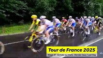 Tour de France 2025 : l'arrivée des coureurs sur Paris le Dimanche 27/07/2025. Etape 21 (stage 21) et dernière étape de ce Tour de France 2025 entre Mantes-la-Ville et Paris Champs-Élysées. Une étape incroyable - et en grande partie sous la pluie - gagnée par Wout Van Aert (Visma-Lease a bike). Cette 112ème édition du Tour de France a été remportée par le coureur Tadej Pogacar (UAE Team Emirates XRG) qui s'offre ainsi une 4ème une quatrième victoire au Tour de France.