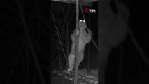 Aç kalan ayı kovanlara ulaşmak için düz demire tırmanmaya çalıştı