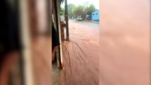 Impressionante: Rua vira rio após chuva intensa e casas são alagadas no Lago Azul