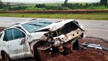 Vídeo mostra carro batendo e rodando na BR-277