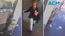 00:18Cafe in Essendon can be seen carrying plates to an outside table when a woman walking past slams