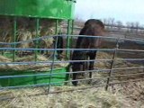 This is a hay feeder/bale feeder manufactured by www.ActionSignsAndBillboards.com. Yes we make signs but we also manufacture horse feeders and cattle feeders. With our chain hopper the bales sits in the chain hopper and not on the ground. The 16 chains that come down from the side of the bale feeder create a hopper that the bale sits in. Cattle can't pull out large chunks of hay because the chains help hold the hay in place. Cattle have to chew the hay between the chains. The loose hay falls into the bottom of the hay feeder and can be consumed later. With all the hay you save the bale feeder will pay for itself. If you want to see a testimonial about this feeder just go to http://www.youtube.com/watch?v=ZoKpeESXmUM&feature=channel_page
