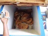 The machine is fed via double walled sound dampening hopper which can be turned in 3 directions to easily adapt to existing installations. Different material discharge options are available e.g.; Open outlet to feed into bins, suction troughs to connect to a blower system, direct transfer into another machine or onto a conveyor. Hopper and discharge design can be tailored to accommodate specific needs.