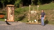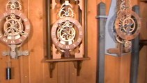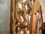 L'une de nos créations en fonction. Nos horloges sont de fabrication artisanale en auvergne.Tous les engrenages sont en bois. Vous pouvez voir d'autres horloges en vous en rendant sur notre site http://www.horloge-bois.fr/. Des automates, boîtes à musique sont à venir.